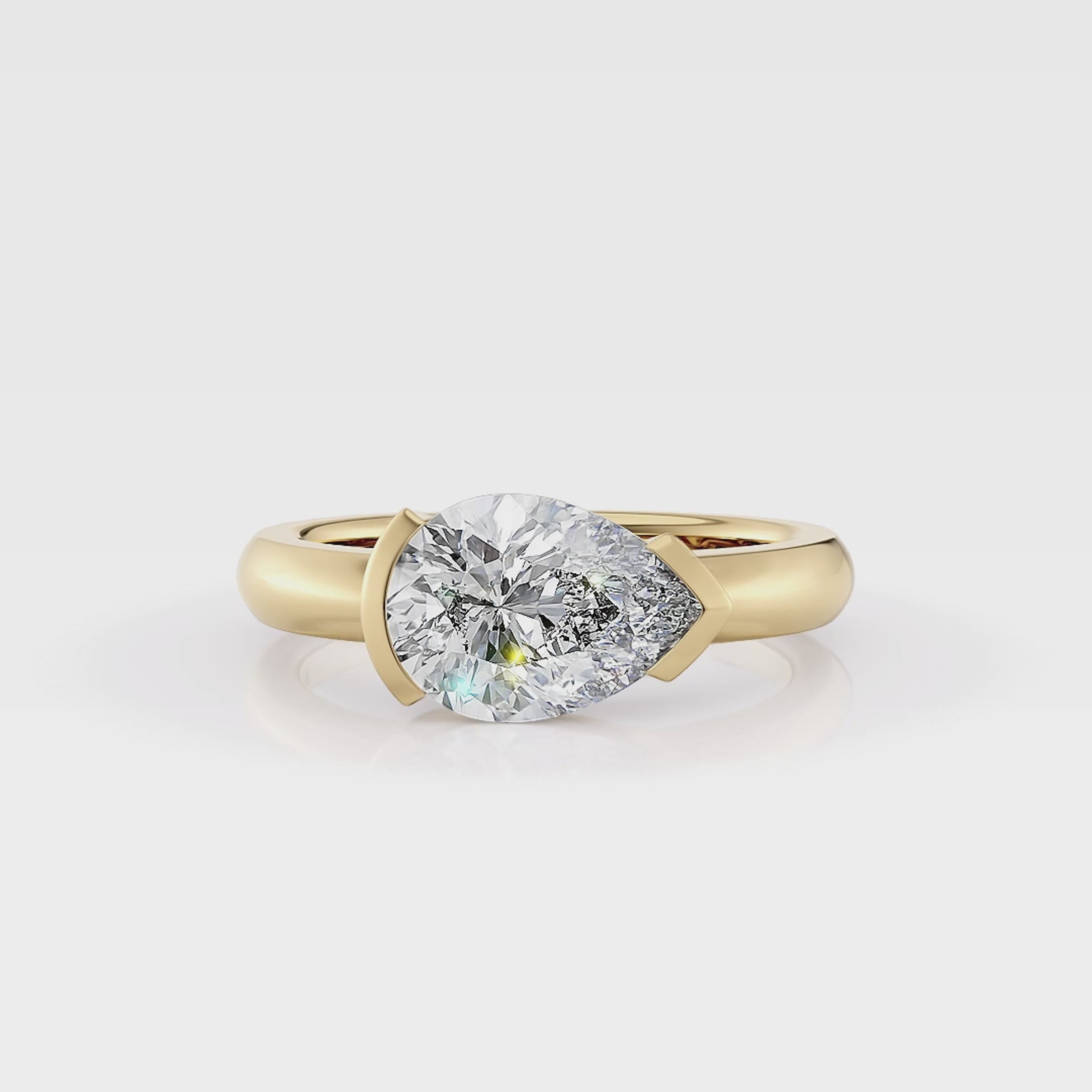 A pear diamond set east west in this stunning minimalistic, modern and clean design.