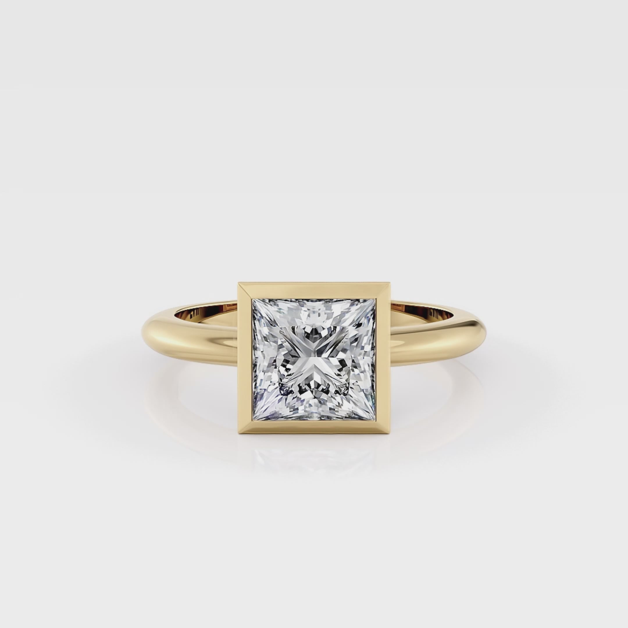 Elevate your love story with the exquisite beauty of The Amelia Ring. Meticulously crafted with ethically sourced lab-grown diamonds, this ring is a testament to conscious luxury and timeless elegance. At its heart gleams a brilliant princess-cut solitaire, expertly bezel-set to sit low on the finger, showcasing its clean-cut allure.