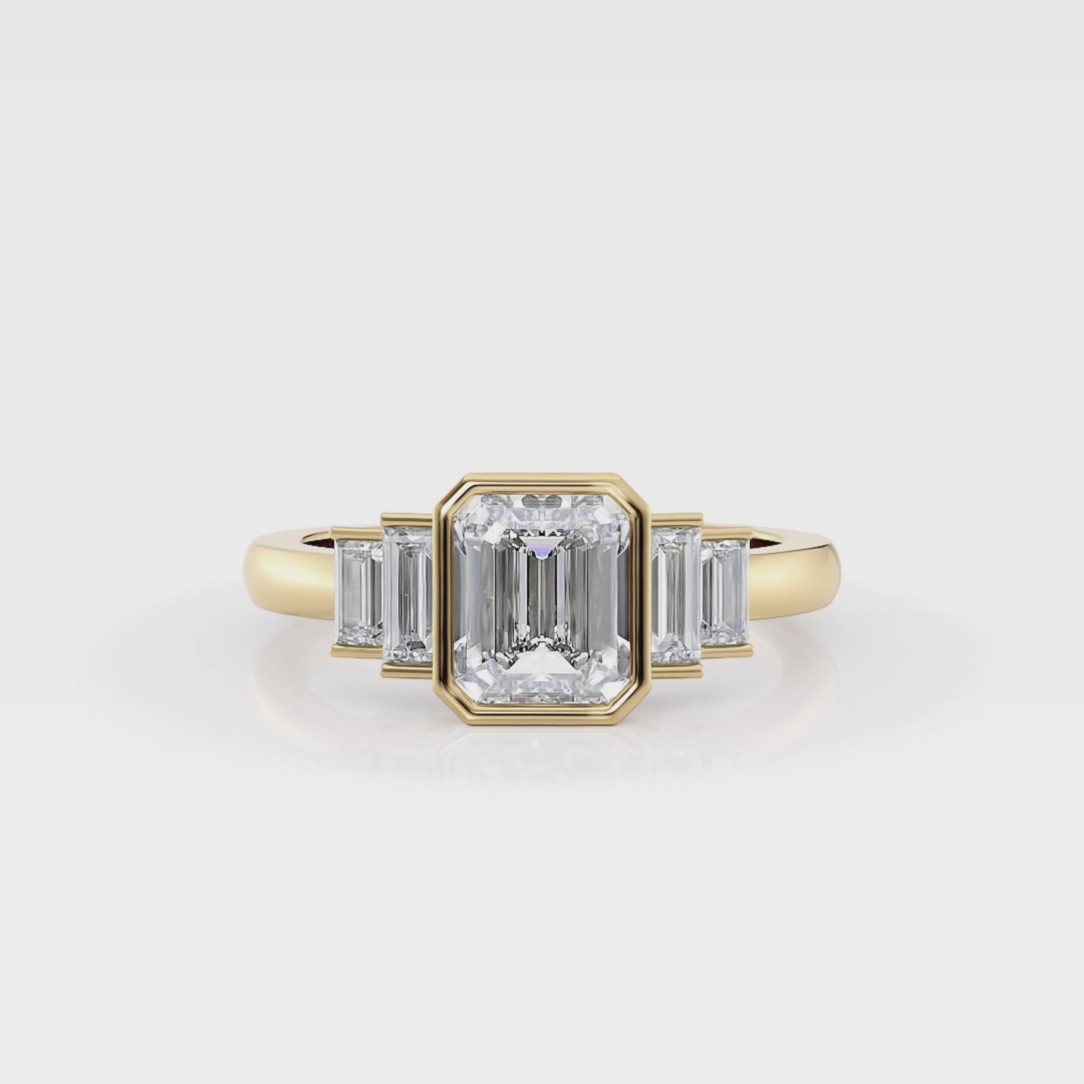 Lab Grown Diamond Rings Handcrafted Emerald Cut Center Stone Bezel Set - The Elodie Ring