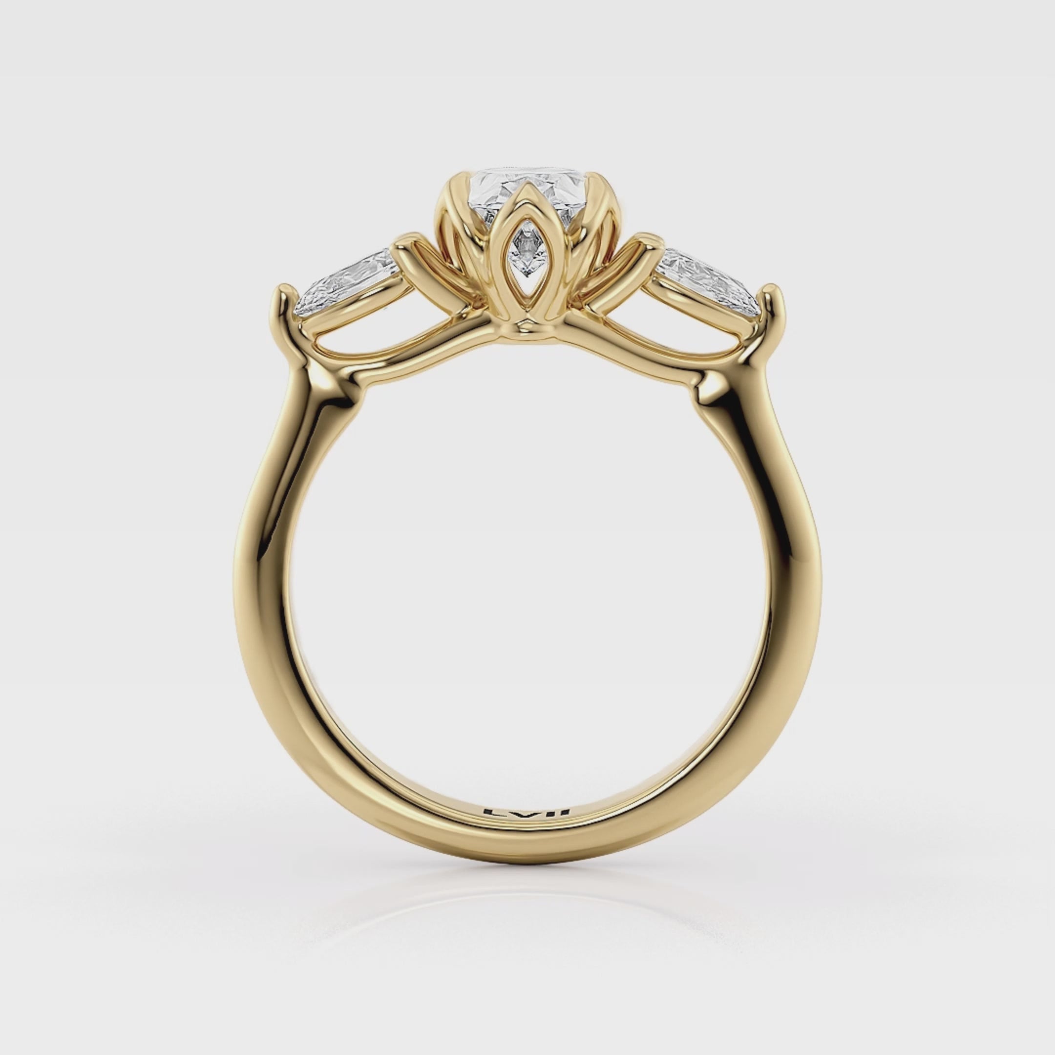 Lotus Blossom 3 Stone Diamond Engagement Ring - The Lotus Ring