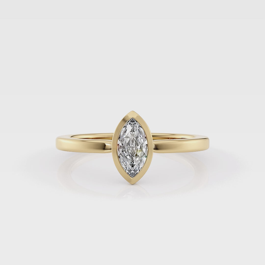 Experience the enchanting glow of Vintage Starlight with our dainty artisanal lab grown diamond vintage engagement rings collection. Introducing the "Mirabelle Ring," a captivating beauty featuring a marquise-cut solitaire diamond delicately bezel-set within a simple bezel set design. Crafted with meticulous care, each ring embodies timeless elegance and sophistication. Elevate your love story with the "Mirabelle Ring," a symbol of refined taste and enduring romance. Immerse yourself in the vintage-inspired charm of the "Mirabelle Ring" and experience the starlit beauty of its unique design.