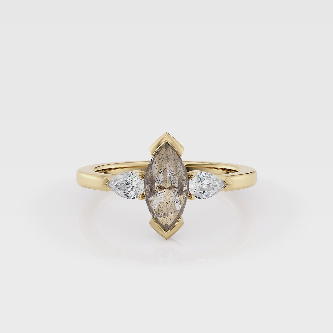 Marquise Shape Salt and Pepper Diamond 3 Stone Ring Engagement Ring - The Olive Ring