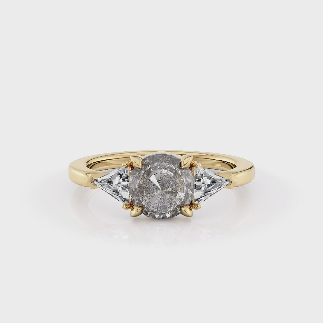 Unique Rose Cut Salt and Pepper Diamond Vintage Engagement Ring - The Winifred Ring