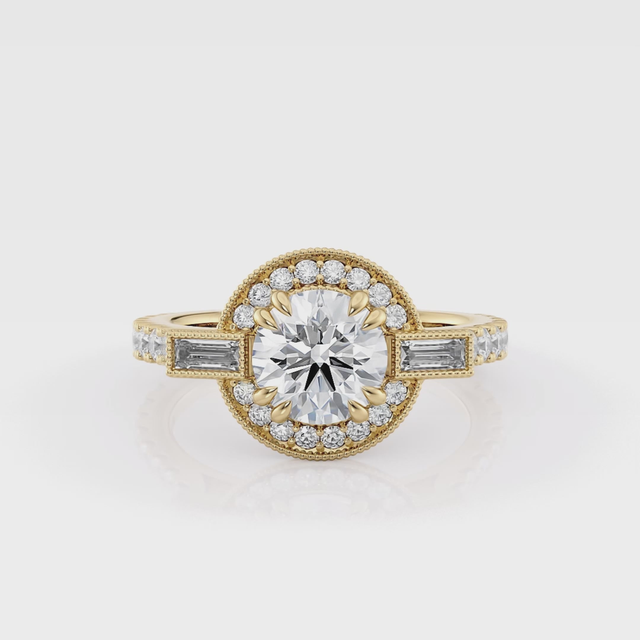 Vintage Engagement Rings Round Center Lab Grown Diamond Rings - The Seraphina Ring