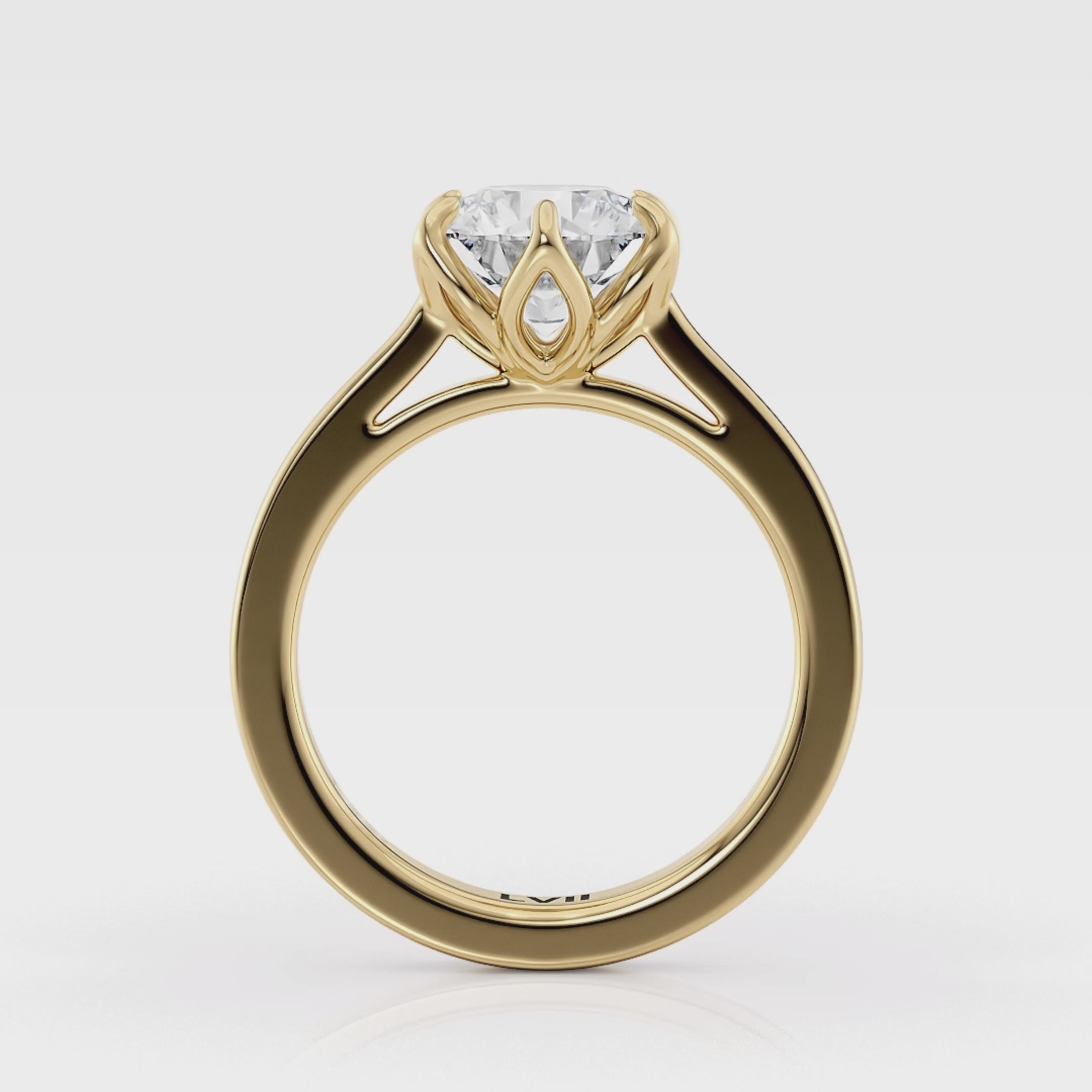Featuring a lotus design basket with a diamond solitaire, The Regal Ring captures the essence of timeless beauty with its vintage-inspired design and exquisite craftsmanship. Crafted with a commitment to ethical practices, it stands as a symbol of enduring love, ethical excellence, and nature-inspired elegance.