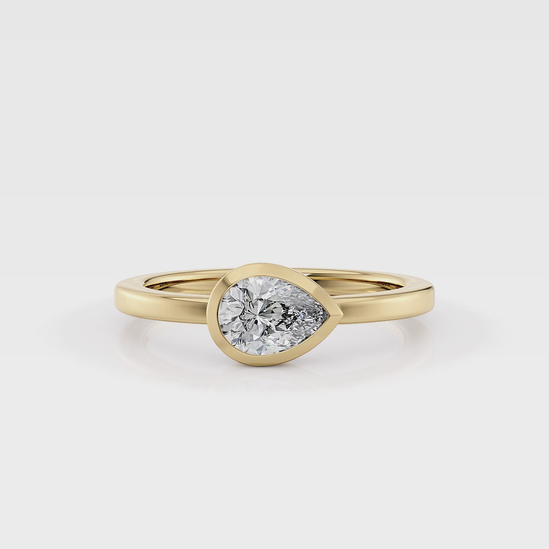 Enter the Enchanted Reverie with our collection of dainty artisan vintage lab grown diamond rings, where each piece tells a story of timeless beauty and enchantment. Introducing the "Clementine Ring," a captivating beauty featuring an east-west pear-shaped solitaire diamond delicately bezel-set. With its simple and minimalistic design, the "Clementine Ring" exudes understated elegance and refined charm. Crafted with meticulous care, each ring symbolizes the essence of vintage allure and sophistication. Elevate your love story with the "Clementine Ring," a true reflection of purity and enduring grace. Immerse yourself in the enchanted reverie of timeless romance with this exquisite piece.