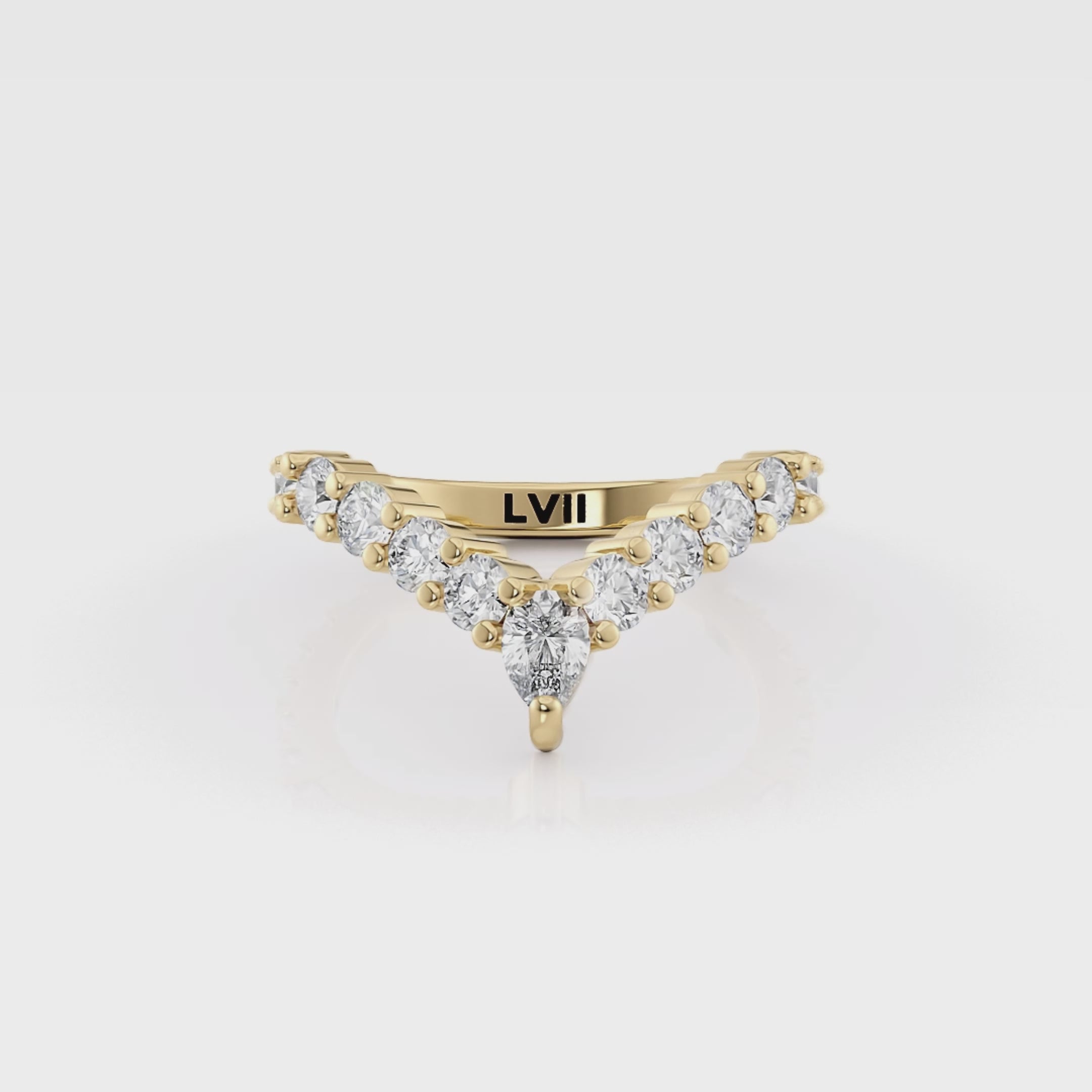 Crafted with meticulous attention to detail, each band exudes modern sophistication with a touch of vintage-inspired elegance. The chevron pattern symbolizes the journey of love and commitment, while the pear shape accent adds a touch of glamour and allure.